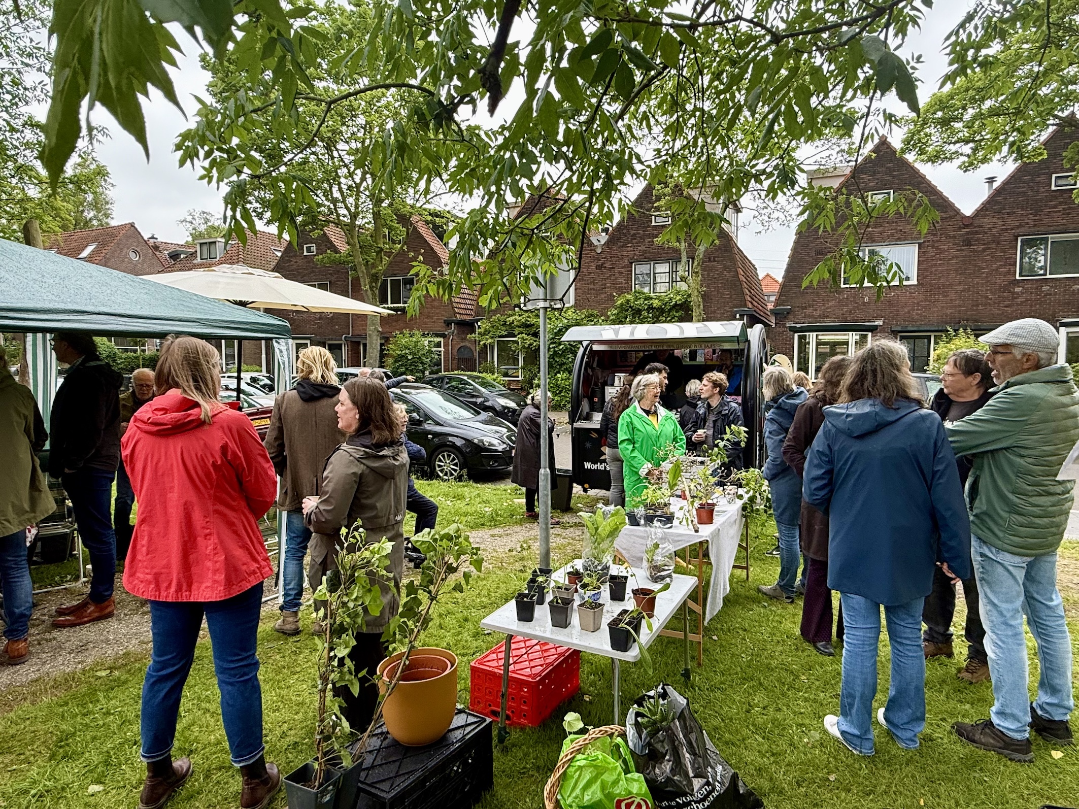 Het eerste team richt zich op vergroening van de buurt. Ze geloven dat een groene omgeving bijdraagt aan een prettigere sfeer én meer verbinding tussen buren. Een plantjesmarkt eind mei vormde een laagdrempelige manier om bewoners met elkaar in contact te brengen. Ook denken ze na over een pluktuin als ontmoetingsplek in het groen.